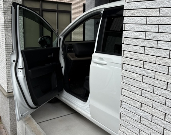 外壁の中央を開けることで以下のように車のドアを少し大きく開けることができます。