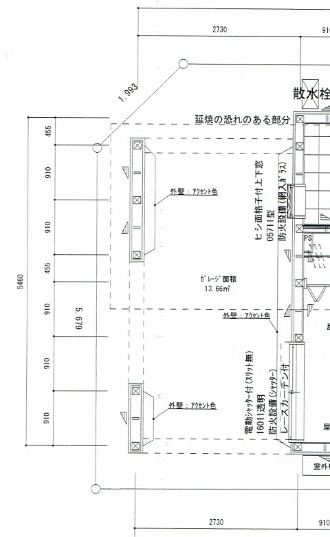 とりあえずガレージに駐車している車の両側ドアが開けられれば良いので、幅が3640mmで、西側の外壁の中央を開けました。