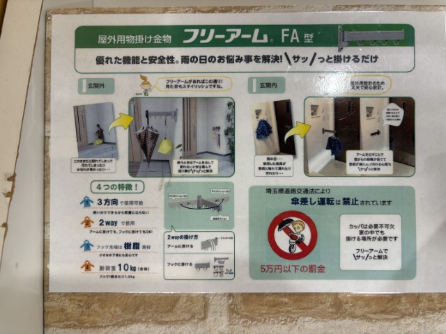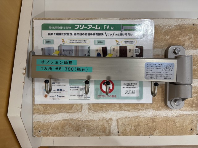 玄関外の傘かけ用のフリーアームは、県民共済住宅のオプションです。