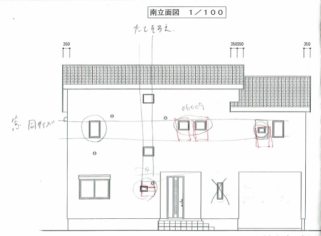立面図を見て窓の位置とサイズがバラバラだったので、できる範囲で窓を揃えてもらいました。