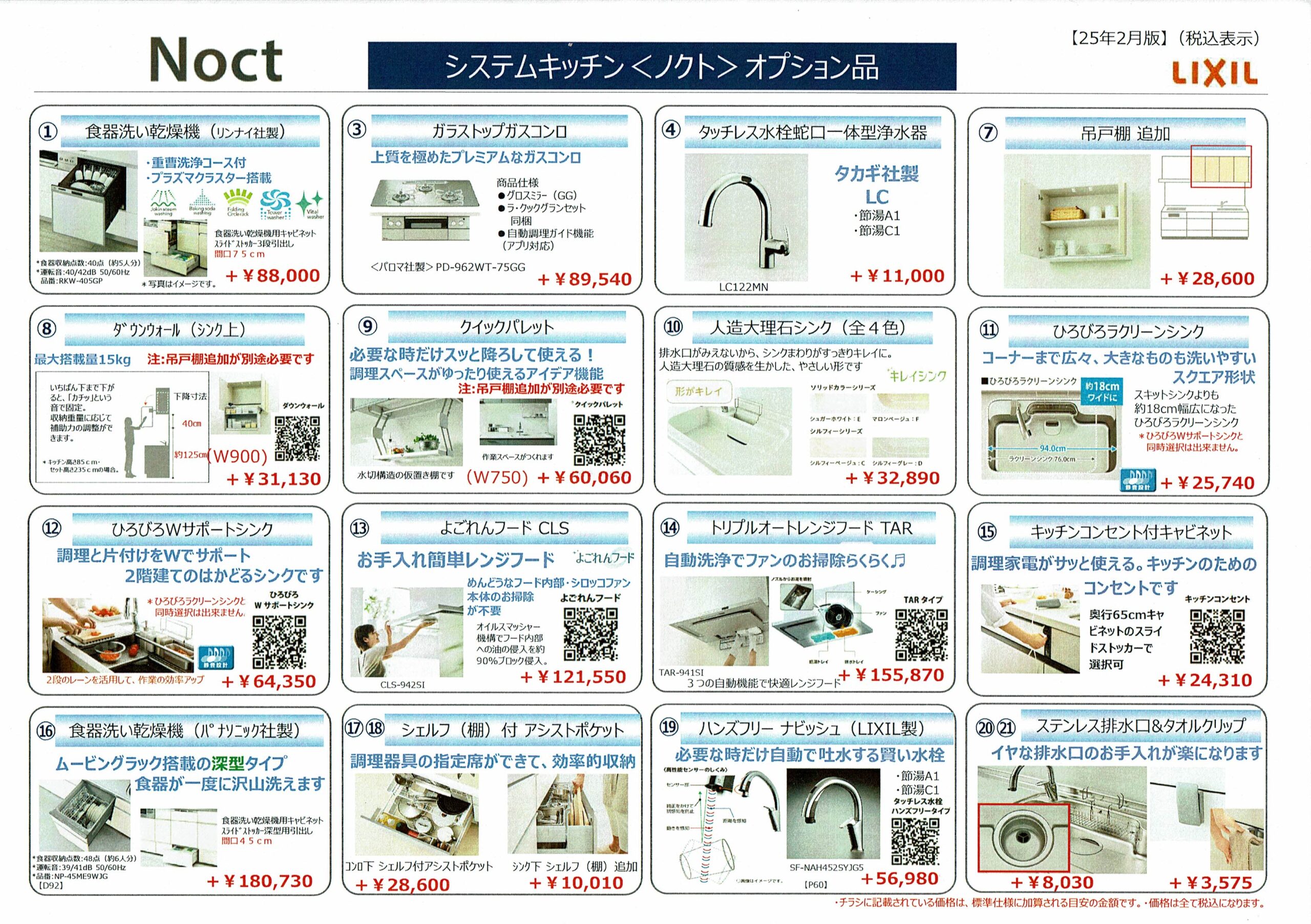 LIXIL システムキッチン〈ノクト〉 オプション一覧(2025年2月版)