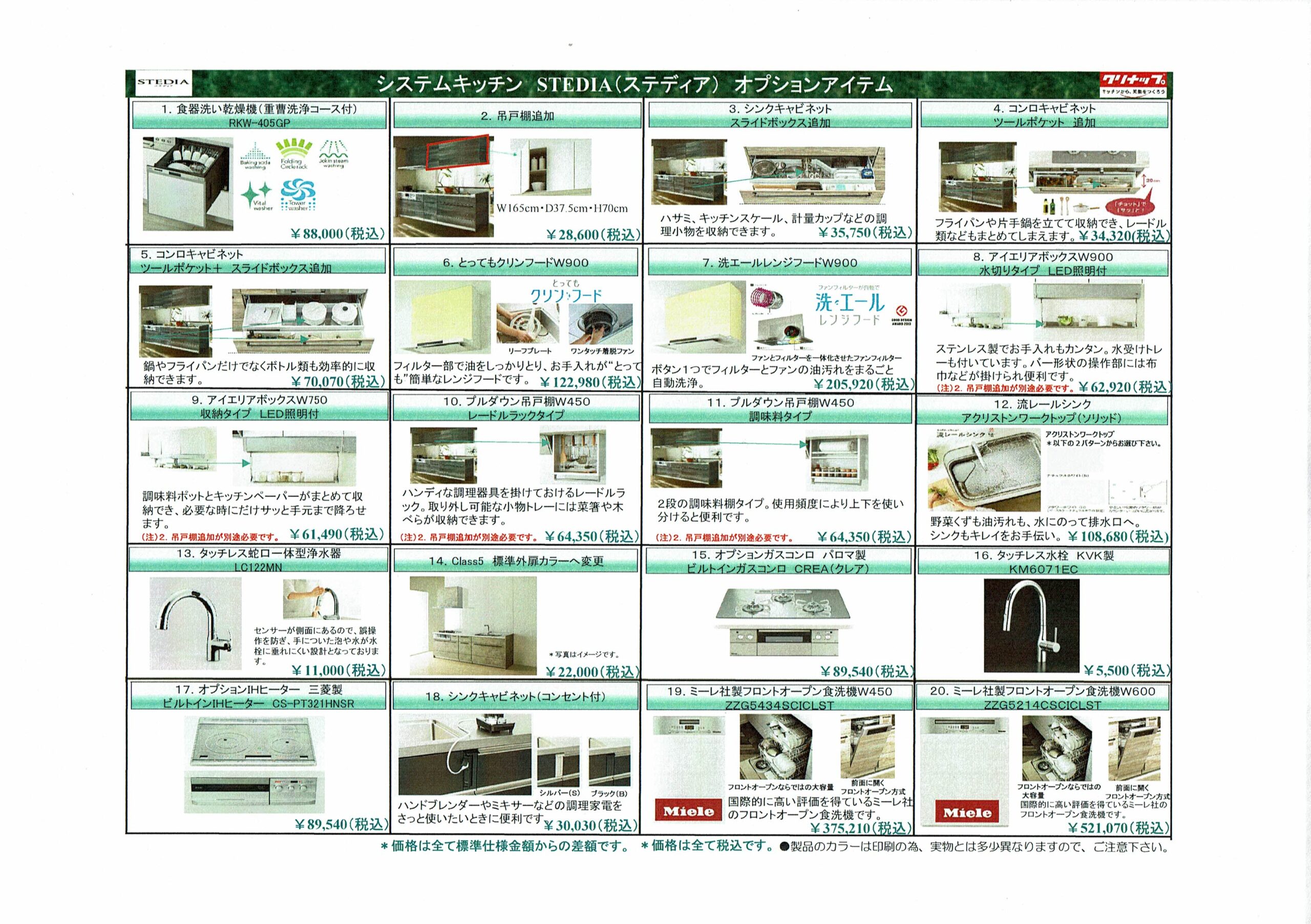 システムキッチン STEDIA(ステディア)県民オプション一覧