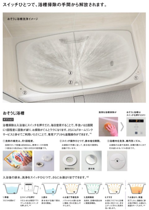 - サーモバスS: ダブル構造でお湯が冷めにくい、高断熱浴槽です。