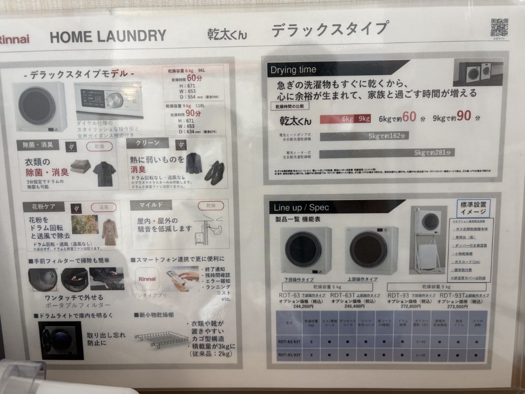 今回は、リンナイの衣類乾燥機「幹太くん」デラックスタイプと業務用を紹介します。