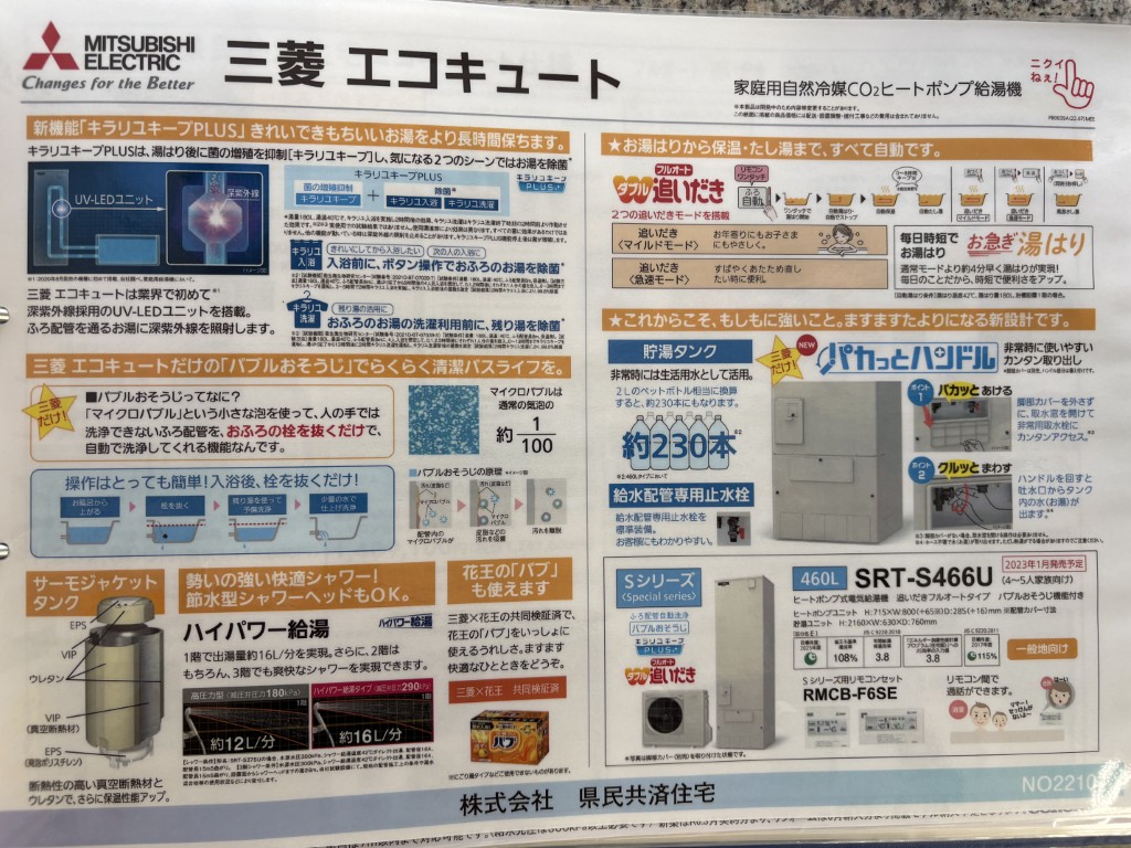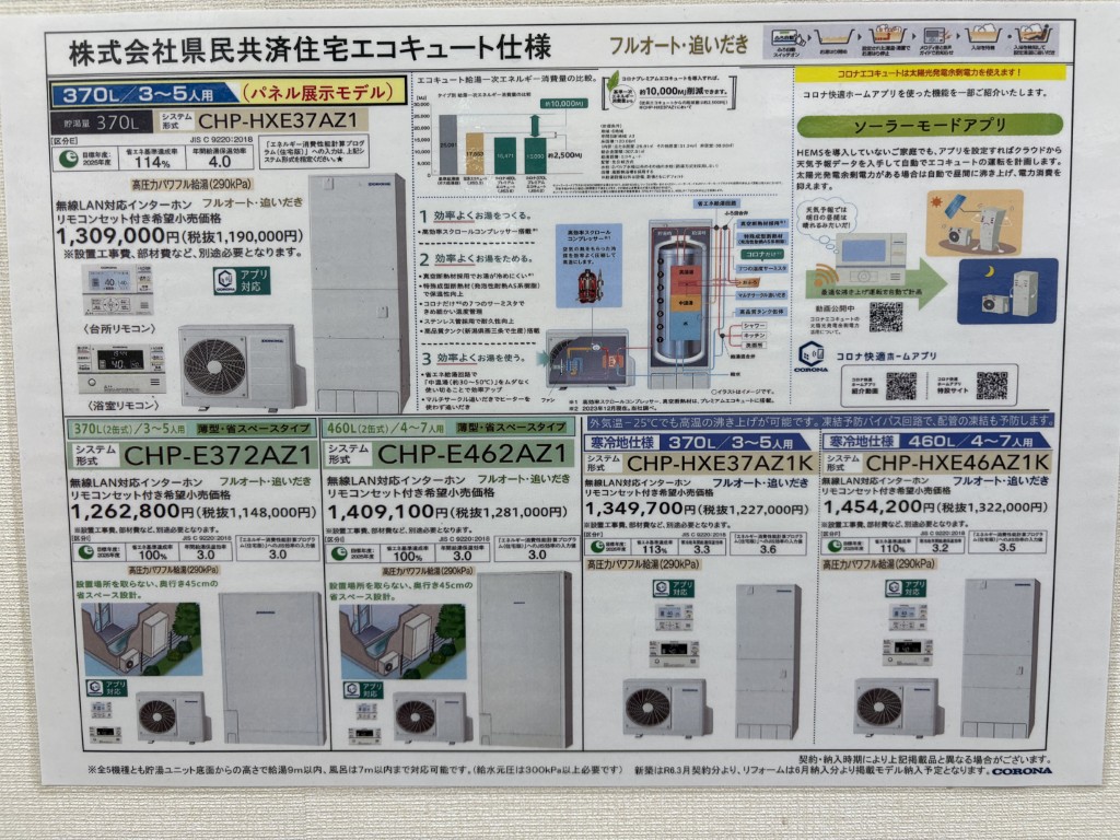 県民共済住宅の給湯器は、エコジョーズが標準です。(2025年現在)