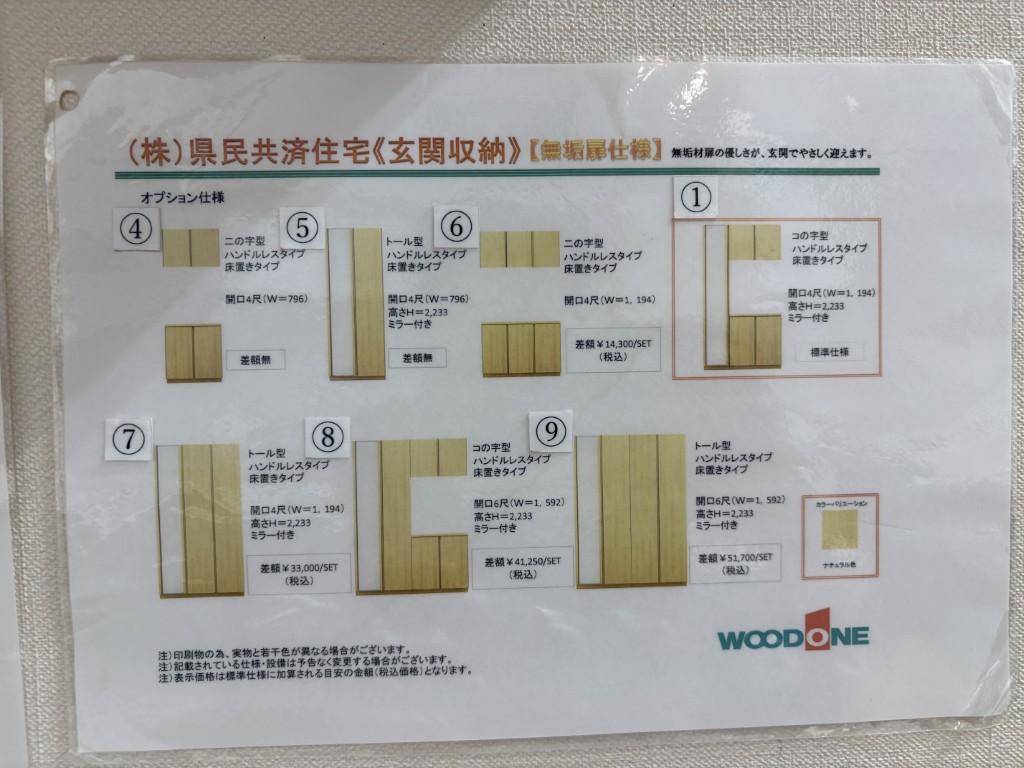 県民共済住宅の玄関収納(シューズクローク)は、ウッドワン、大建工業の2社です。(2026年現在)